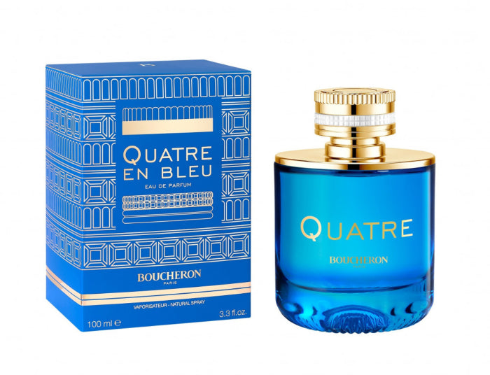 عطر كواتر ان بلو من بوشرون عطر زهري خشبي بالمسك للنساء. تم اطلاقه حديثا عام 2021. الانف وراء هذا العطر هي سونيا كونستانت ، يبدا العطر بعبير فواح من الليمون ، البرغموت والبرتقال، مرورا بقلب انيق من مسك الروم، الياسمين المصري والورد، حشب الصندل، خشب اكيغالا والمسك في القاعدة.
