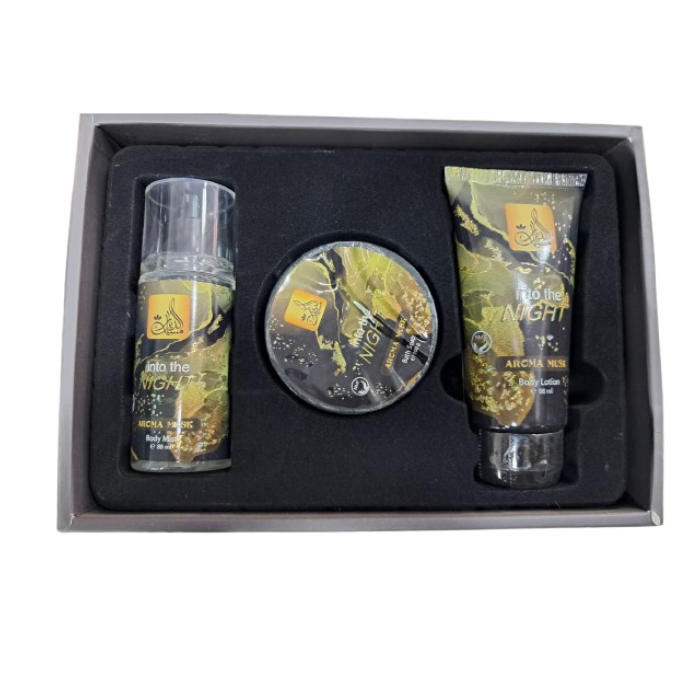 طقم مسك اديار انتو ذا نايت اروما مسك للنساء بادي ميست88 مل + لوشن للجسم 88 مل + صابون استحمام 100 مل