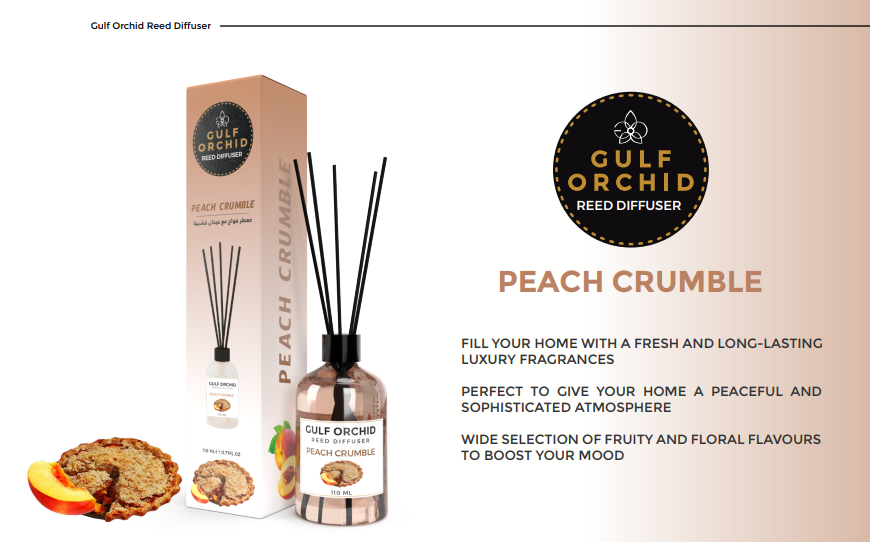 - Gulf Orchid Reed Diffuser Peach Crumble add style to your home.