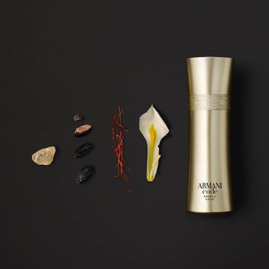 Armani Code Absolu Gold by Giorgio Armani Cologne. An oriental spicy cologne, Armani Code Absolu Gold boasts an impressive collection of ingredients, each note evocative in its own right. The fragrance opens with green apple and mandarin orange, a tangy burst of fruit that appeals to your nose and palate. Iris and saffron comprise the heart notes, their floral, powdery accords suggesting mystery and romance. Benzoin, cedar, guaiac wood and tonka bean's luxurious base reaches out with its warm, woody and amber accords, absorbing and complementing the upper notes. This notably rich finish makes the cologne popular for evening wear in the spring, fall and winter. Long-lasting with a strong sillage, the fragrance is well-suited to special occasions such as intimate dinners and romantic assignations.