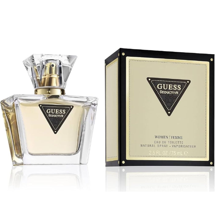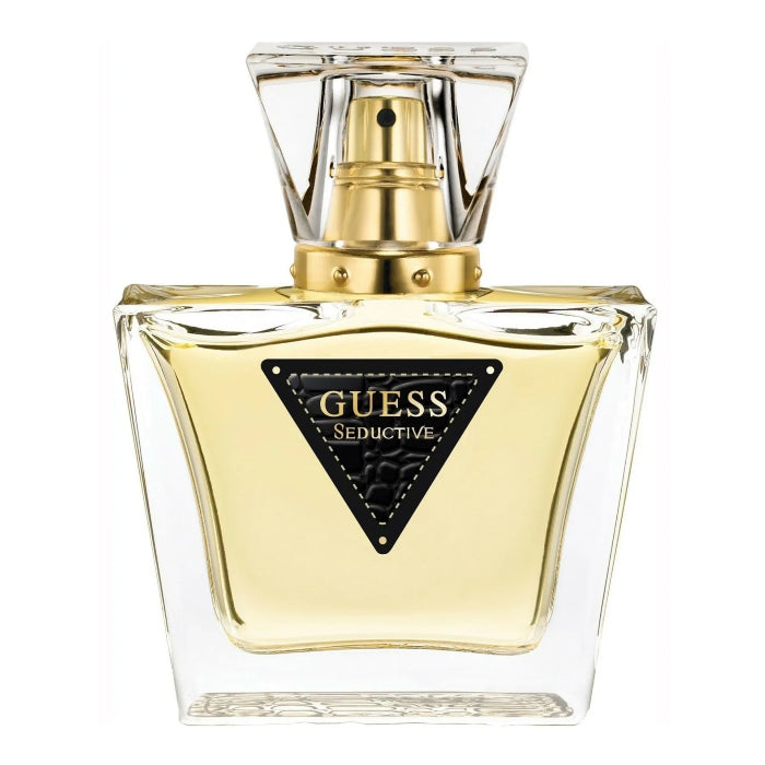 Guess Seductive by Guess. If the testers in the store keep you wondering about which perfume fits you, stop the guessing and embrace the scent of Guess Seductive for women. Created in 2010 by Guess, this natural scent combines the sweet yet subtle notes of vanilla, pear, jasmine, cashmere wood and African orange flower. As one of the most inviting scents, the combination of natural vanilla and a sensual jasmine aroma leaves the guessing out of your day when splashing on Guess Seductive.