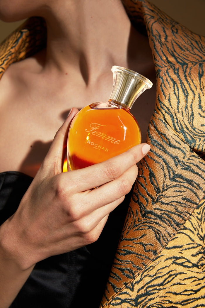 Launched by the design house of Rochas in 1944, Femme Rochas is classified as a refined, woody, mossy fragrance. This feminine scent possesses a blend of plum and peach, blended with light florals and musk. It is recommended for evening wear.