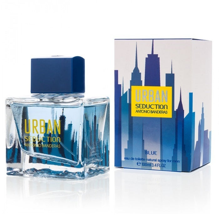Urban Seduction Blue by Antonio Banderas Perfume. Urban Seduction Blue is a sexy and invigorating cologne for men. With the fresh and exciting scent note of mint prominently featured in the blend, this fragrance is really cool – both figuratively and literally. Other scents included in this cologne include the earthy notes of amber and musk, along with marine and wood notes. This sexy fragrance was released as a limited edition scent in 2015.